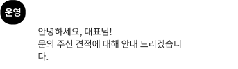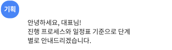 외주사와의 소통, 한 번쯤 답답하셨던 경험 있으신가요? 수많은 프로젝트를 거치며 완성된 탄탄한 소통 체계를 갖추고 있어 단체톡에 질문만 전달해주시면,