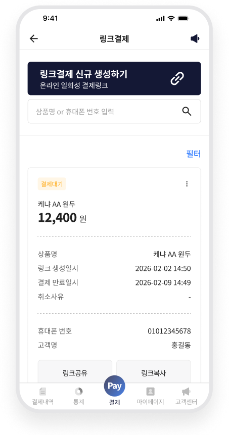 링크만 보내면 끝, 고객은 클릭 한 번으로 바로 결제 완료